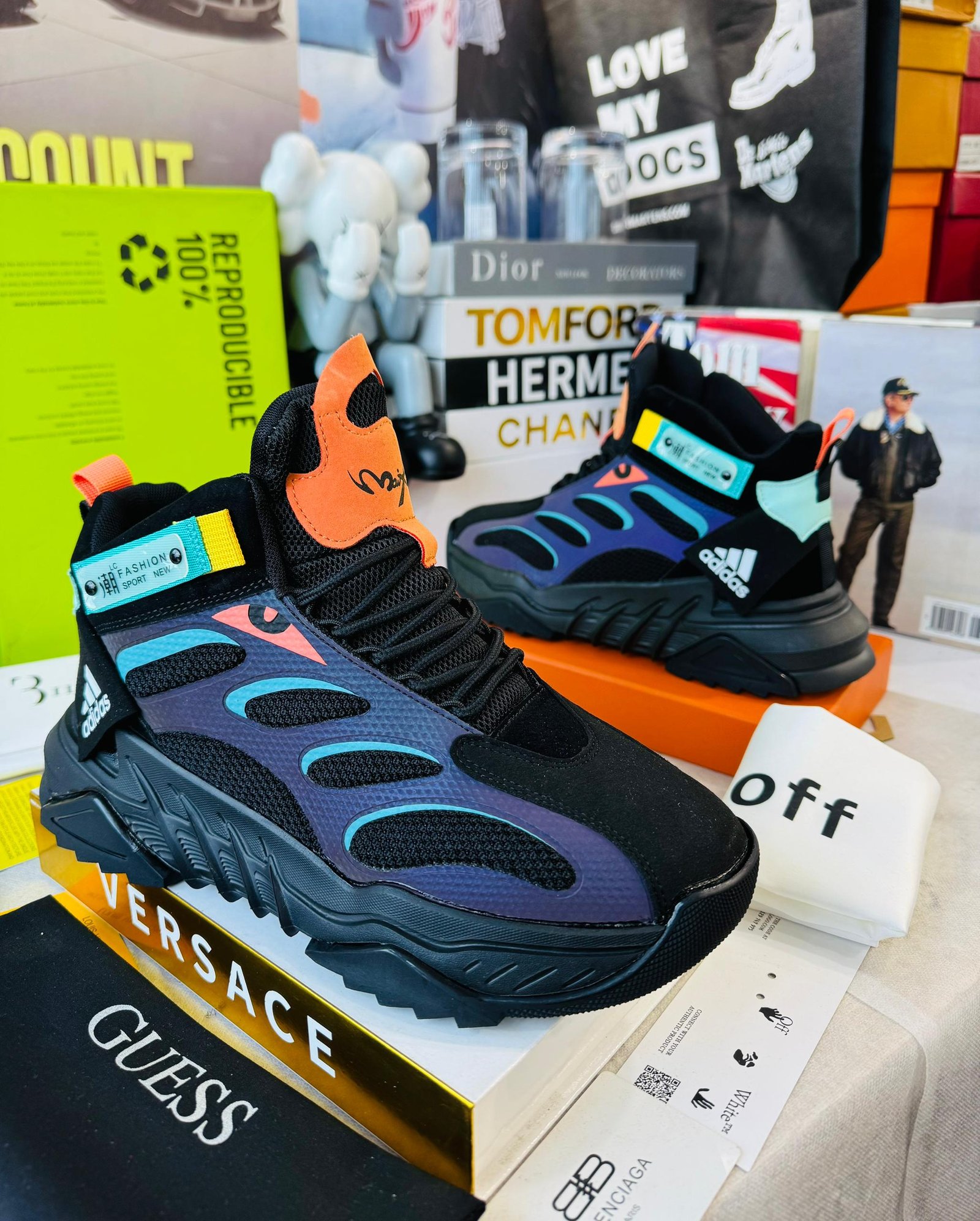 Step into a new dimension of style and stability with the Nova Pulse Mid. These aren’t just sneakers; they’re a statement. Crafted for the fearless trendsetter, the design features a striking black base contrasted by a vibrant, cosmic color palette—deep violets, electric blues, and fiery oranges—that ensures you stand out in any crowd.