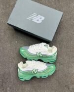 Lace up in the fresh, chunky style of the New Balance 9060 “Mint Cloud.” A cool blend of crisp white and vibrant mint green with classic grey accents, this sneaker features a modern, oversized silhouette for maximum comfort and head-turning appeal.