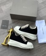 Step into the world of contemporary luxury with these striking Rick Owens Low Sneakers, featuring the brand’s iconic and exaggerated Bumper sole. A quintessential piece of avant-garde footwear, these sneakers perfectly blend a classic low-top silhouette with Owens’ signature dystopian and architectural aesthetic.